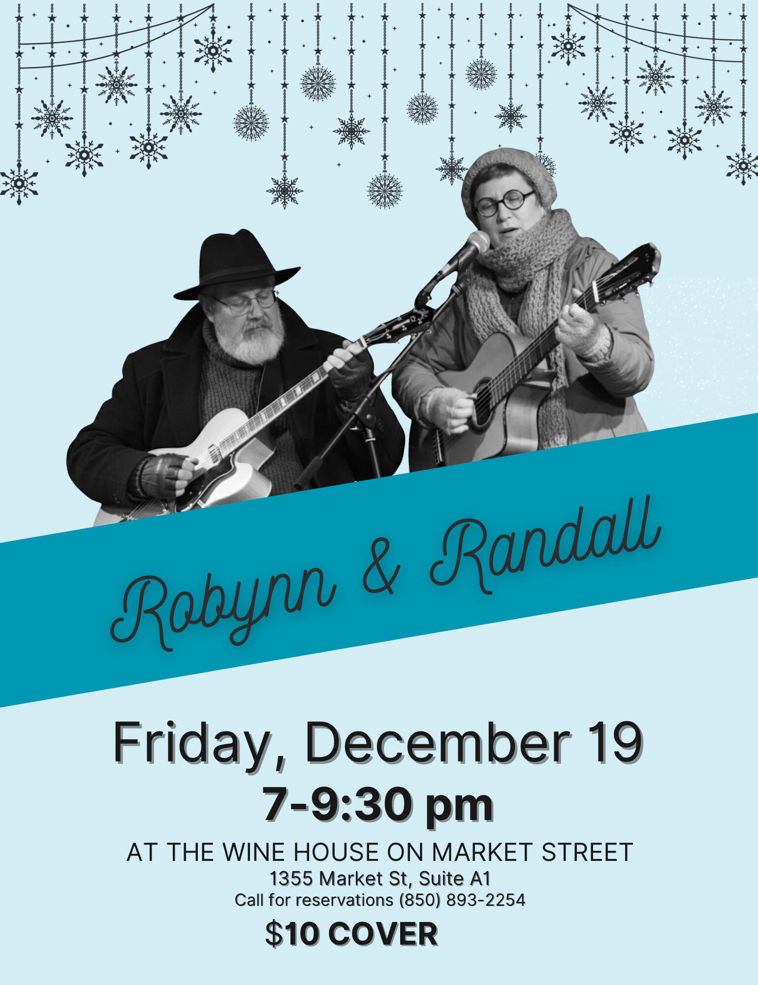 December 19, 7pm, The Wine House at Market St., Robynn & Randall. $10 cover. Reservations recommended, (850) 893-2254.