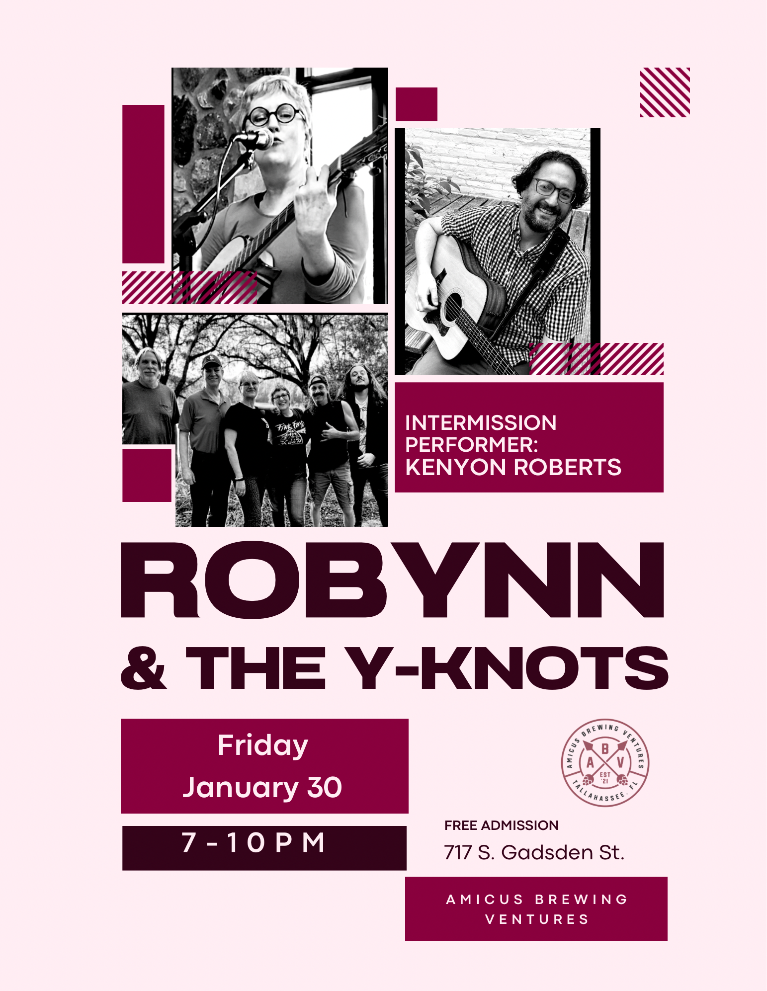 January 30, 7-10pm, Amicus Brewing Ventures, Robynn & the Y-Knots, feat. Kenyon Roberts. Free.